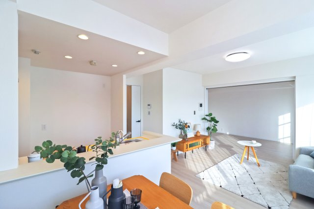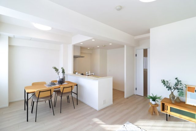 ポイント - リノベーション済 / フローリング / バルコニー / エレベーター / 照明器具付き / 駐輪場 / 外観タイル張り / 食器洗い乾燥機 / システムキッチン / 対面式キッチン / バス・トイレ別 / 追焚機能浴室 / 浴室乾燥機 / 温水洗浄便座 / 洗髪洗面化粧台 / インターネット対応 / オートロック / TVモニタ付インターホン / 宅配ボックス / 防犯カメラ